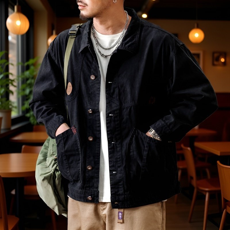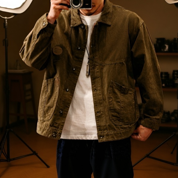 남자 헤비 박시 데님 상의 코트 카고 점퍼 박시 사파리 점퍼